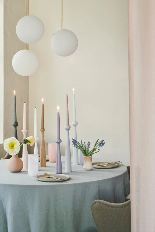 Les bougies Blossom d’applicata accompagnent idéalement les bougeoirs en bois de la série Blossom, mais elles conviennent également à d’autres bougeoirs. Fabriquées et teintes à la main au Danemark, les bougies Blossom sont composées de cire de paraffine pure et sont dotées d’une mèche en coton auto-extinguible : lorsque la mèche s’épuise, la flamme s’éteint automatiquement. Les teintes raffinées des bougies Blossom ajoutent une irrésistible touche d’élégance aussi bien aux tables de tous les jours qu’aux occasions plus festives, et égayent également l’intérieur d’une chambre ou d’un salon.