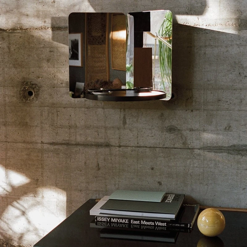 La collection 124° d’Artek est une collection de miroirs sculpturaux qui jouent avec la lumière et les reflets. Conçus par Daniel Rybakken, les miroirs doivent leur nom à leur forme particulière : deux tôles d’acier fin et poli s’allient pour former un angle de 124 degrés. L’utilisation de la tôle d’acier rend la structure du miroir sans cadre incassable et extrêmement fine. La collection 124° comprend trois miroirs de tailles différentes, qui peuvent être fixés au mur ou posés. De plus, la version moyenne est dotée d’une petite étagère en bois qui apparaît ronde lorsqu’on la regarde dans le miroir.