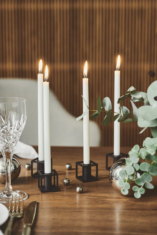Les élégantes bougies de By Lassen diffusent une chaleureuse lumière d’ambiance lors de fêtes ou de dîners occasionnels. Elles sont magnifiques placées près d’une fenêtre ou sur une table d’appoint. Ces bougies de cire extra-fines s’adaptent aux bougeoirs Kubus Micro de By Lassen et sont vendues par lot de neuf.