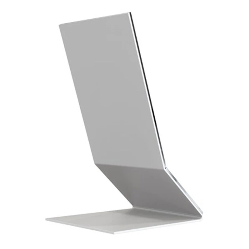 Unu de Frost est un miroir de table simple et élégant. Ce miroir sans cadre est constitué d’une plaque d’acier inoxydable qui a été pliée de façon à former un angle. Conçue par l’agence de design danoise Bønnelycke MDD, la collection Unu est caractérisée par des lignes précises et graphiques, ainsi que par des formes géométriques. Avec leur style minimaliste, les miroirs Unu sont parfaits dans le couloir, la salle de bains ou la chambre à coucher et peuvent être facilement assortis les uns aux autres.