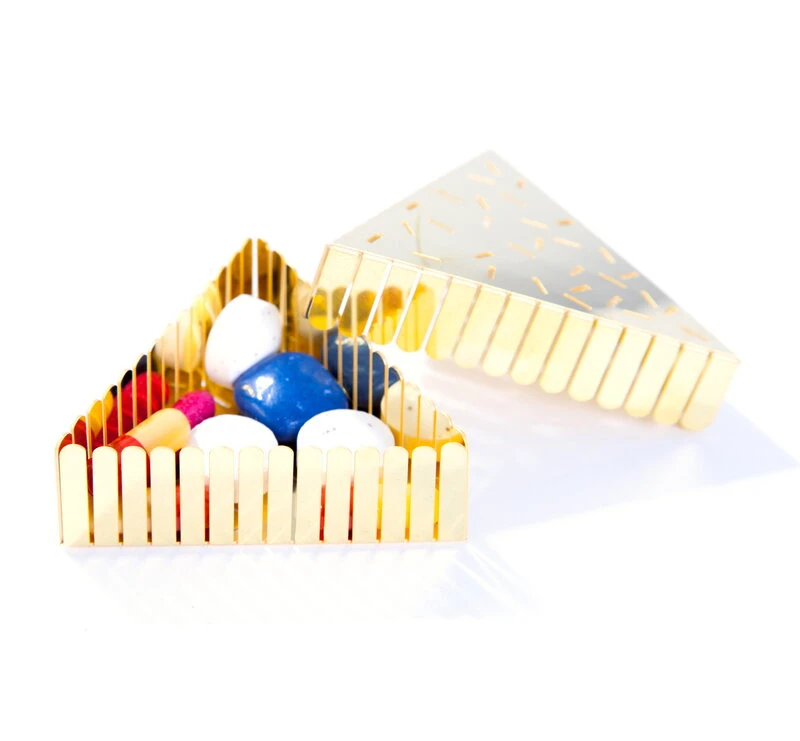 La collection Brass Box de Fundamental Berlin rappelle les boutons des lecteurs de cassettes et des magnétoscopes VHS traditionnels. Fabriquée en laiton, cette petite boîte de rangement ressemble à un bouton lecture. Sa finition brillante lui confère un aspect luxueux. Cet élégant élément décoratif peut accueillir des petits objets essentiels du quotidien tels que des petits cosmétiques, des bagues et des boucles d’oreilles, mais il est également très beau sans rien à l’intérieur.
