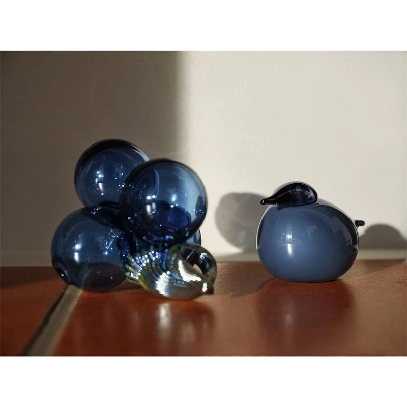 Réalisé en verre de couleur bleu pluie avec une tige brillante et réfléchissante, le modèle Grape est un excellent exemple de l’approche audacieuse, espiègle et expérimentale du design d’Oiva Toikka. Chaque fruit fantaisiste est fabriqué en verre soufflé-bouche dans la verrerie d’Iittala en Finlande. Ce sont des pièces d’art uniques qui mettent en évidence non seulement l’imagination infinie d’Oiva Toikka, mais aussi les compétences exceptionnelles des souffleurs de verre d’Iittala.