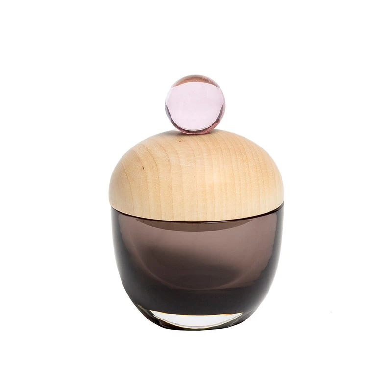 Les adorables boîtes Lyyli de Katriina Nuutinen associent les traditions du soufflage de verre et de l’artisanat du bois finlandais sous une forme charmante et moderne. En verre soufflé et coloré, la boîte est dotée d’un couvercle en bois rond, cerise sur le gâteau, d’un petit bouton en verre au coloris magnifique. L’association de bouleau clair et de verre brillant est charmante et ludique et elle est sublimée dans un ensemble de plusieurs boîtes différentes. Mesurant 6,5 cm de diamètre, les boîtes Lyyli peuvent être remplies de pastilles, d’accessoires en papier, de trombones, de bijoux et autres petits trésors.