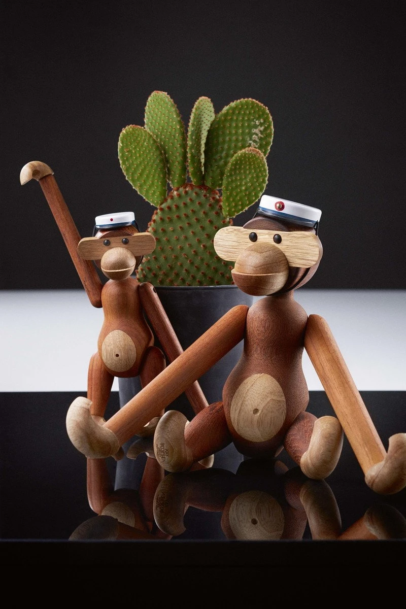 La casquette d’étudiant de Kay Bojesen s’adapte parfaitement au petit singe en bois et constitue un cadeau de fin d’études ludique, soit avec le singe, soit séparément pour quelqu’un qui possède déjà l’adorable primate. En hêtre peint, elle représente le couvre-chef traditionnel danois des étudiants et comporte un élastique pour la maintenir en place.