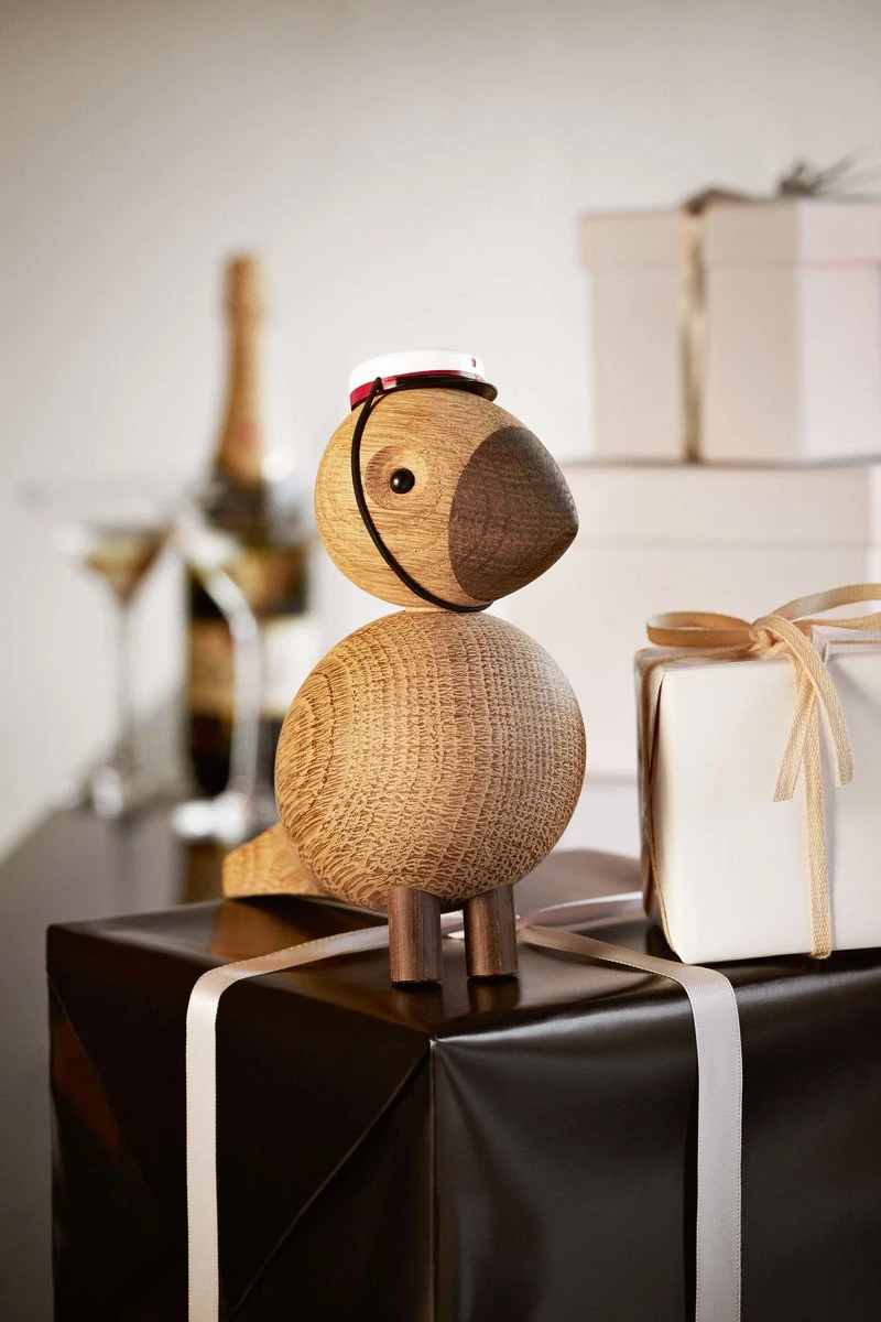 La casquette d’étudiant de Kay Bojesen s’adapte parfaitement au petit singe en bois et constitue un cadeau de fin d’études ludique, soit avec le singe, soit séparément pour quelqu’un qui possède déjà l’adorable primate. En hêtre peint, elle représente le couvre-chef traditionnel danois des étudiants et comporte un élastique pour la maintenir en place.