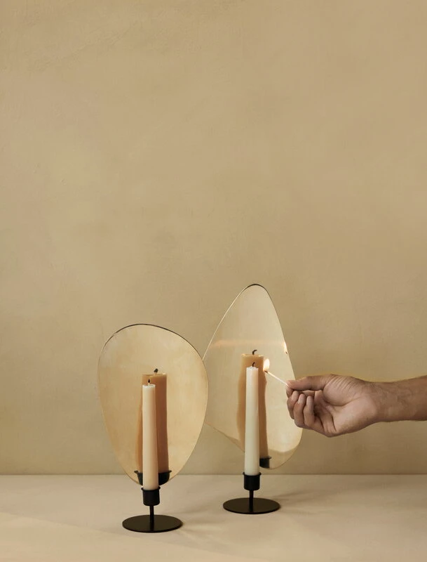 Le porte-bougie Flambeau de MENU présente une forme sculpturale qui s’inspire de l’éclairage moderniste français et de la forme irrégulière et changeante de la flamme d’une bougie.
