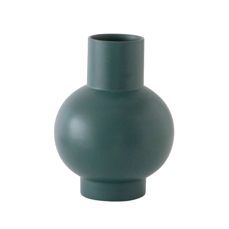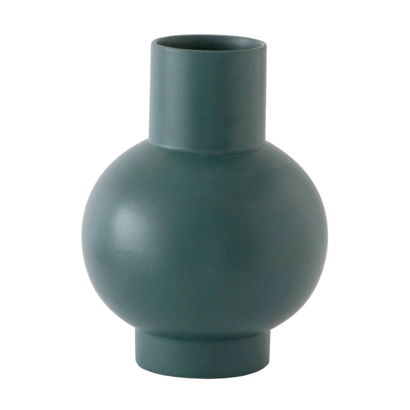 Le vase Strøm de Raawii est de forme simple et sculpturale, idéal pour diverses compositions florales, créant un contraste amusant avec le caractère délicat des fleurs. Le vase minimaliste, avec sa base ronde allégée par un col cylindrique, est tout à fait ravissant, même sans fleurs.