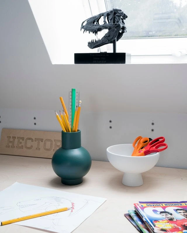 Les formes simples et originales de la collection Strøm sont inspirées des natures mortes cubistes de l’artiste danois Vilhelm Lundstrøm. Outre les formes géométriques typiques du cubisme du début du XXe siècle, le designer Nicholai Wiig Hansen s’est inspiré des peintures pour choisir un bouquet de belles teintes pour ses produits. Les formes différentes, mais néanmoins similaires, vous incitent à associer de façon audacieuse les tailles et les couleurs pour créer votre propre œuvre d’art, que ce soit sur votre table ou pour la décoration intérieure de votre maison.
