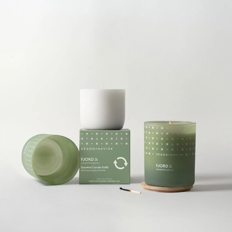 La bougie parfumée Fjord de Skandinavisk présente des notes de fruits mûrs, de cassis, mais aussi de fleurs de pommier et de poirier. Son parfum vous transporte dans les fjords norvégiens, avec leurs forêts de conifères, leurs vergers et leurs chutes d’eau impétueuses.