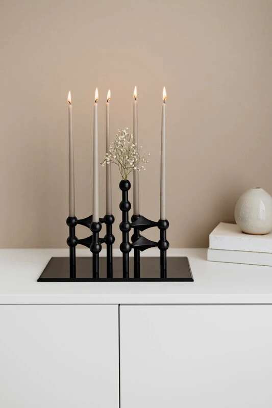 Le vase STOFF Nagel fait partie de la collection de STOFF Copenhagen, connue principalement pour les bougeoirs conçus par l’architecte allemand Werner Stoff dans les années 1960. À l’instar des bougeoirs, le vase STOFF possède une construction modulaire élégante, qui vous permet de le combiner avec d’autres pièces de la gamme STOFF et ainsi créer une composition tout à fait unique.