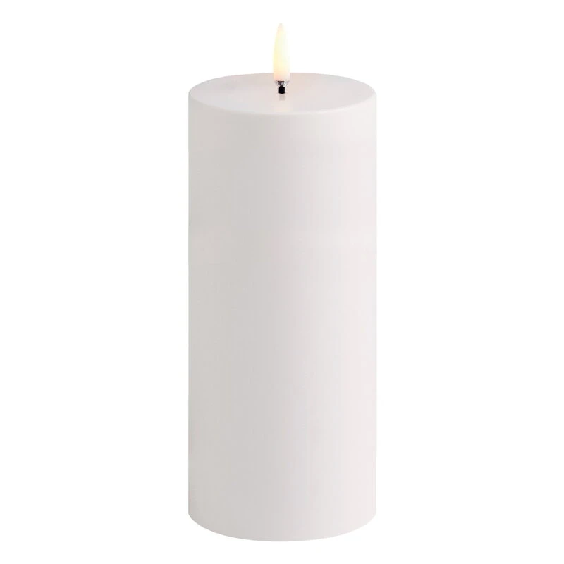 La bougie pilier LED d’extérieur d’Uyuni Lighting est un moyen sûr de créer une atmosphère chaleureuse et accueillante dans les espaces extérieurs, comme celle que l’on ne peut obtenir qu’avec le doux scintillement d’une bougie allumée. Résistante à l’eau et aux UV, la bougie LED d’extérieur est dotée d’une flamme 3D brevetée d’Uyuni qui imite le scintillement d’une bougie classique et illumine en douceur dans un ton blanc chaud.
