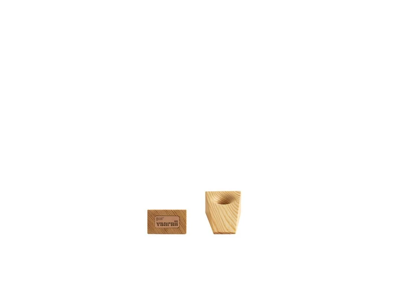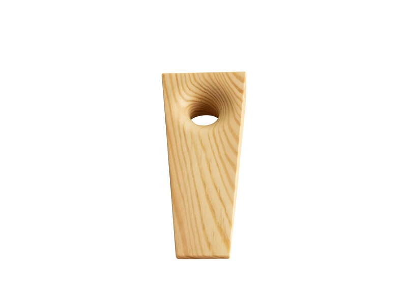 Le butoir de porte en bois de pin de Vaarnii s’inspire du coin d’abattage d’un bûcheron. Cet objet simple est orné d’un joli motif de grain typique du matériau ainsi que d’une plaque de cuivre sophistiquée portant le logo de la marque. Mais ce qui attire le plus l’œil, c’est le trou qui permet non seulement de saisir plus facilement le butoir de porte, mais aussi de créer un tourbillon fascinant dans le grain du bois. Le butoir de porte est fabriqué en Finlande à partir de bois de pin certifié FSC.