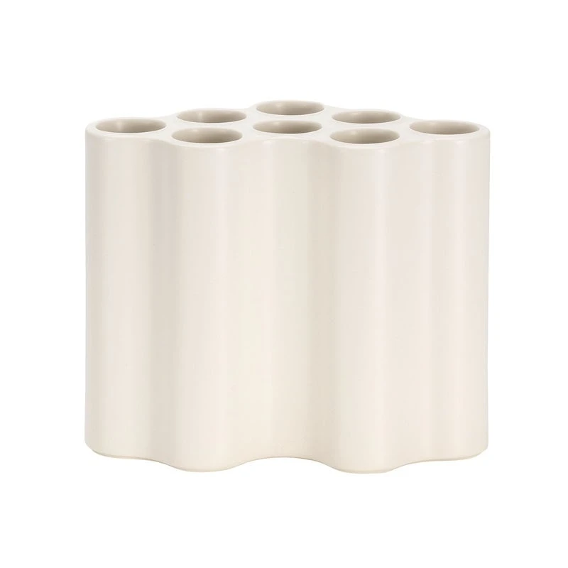 Le vase Nuage Céramique de Vitra attire l’attention avec son design en forme de nuage que les frères Bouroullec ont utilisé pour la première fois dans leurs étagères modulaires en plastique en 2002. 16 ans plus tard, ils ont adapté la forme du nuage à la collection Nuage Céramique, qui se compose de vases en céramique de plusieurs tailles différentes. Les vases Nuage sont superbes seuls et encore plus en groupe. Chaque vase comporte huit trous en forme de tube pour créer des arrangements polyvalents de fleurs et de plantes. Les vases en céramique sont faits à la main et sont donc uniques.